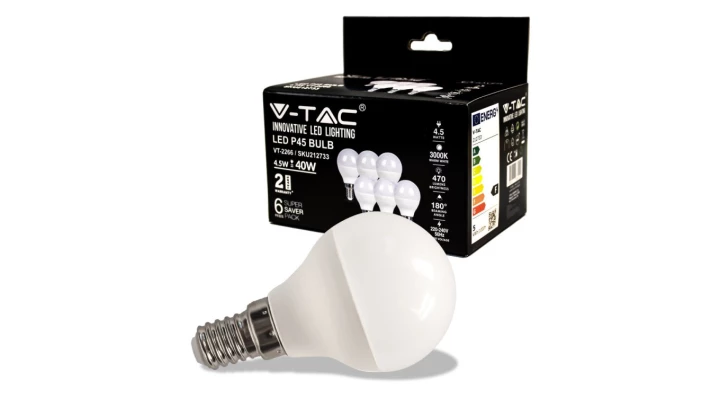 Żarówka LED 4,5W E14 P45 2700K 470lm 180st. (BOX 6 szt.) 212733