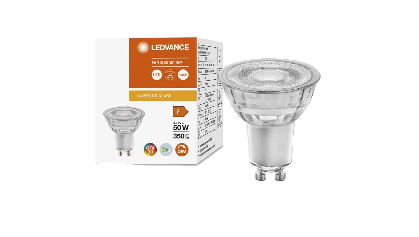 Żarówka LED GU10 4,7W = 50W 350 lm 4000K Neutralna 36 CRI90 Ściemnialna Szklana LEDVANCE Superior