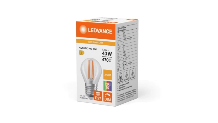 Żarówka LED P45 E27 4.2W = 40W 470lm 2700K Ciepła Biała FILAMENT ŚCIEMNIALNA LEDVANCE
