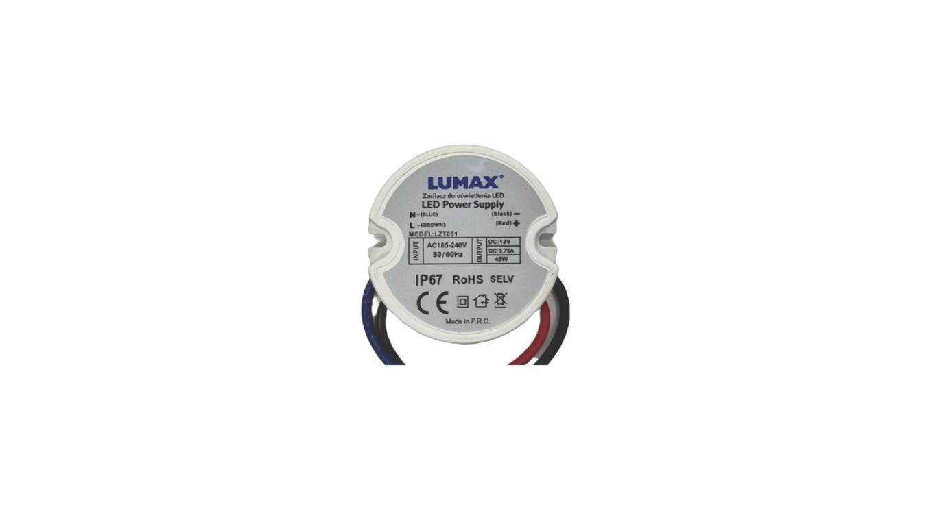 Zasilacz do oświetlenia LED montażowy IP44 45W, 12V, 3,75A, 50x22mm - do Puszki