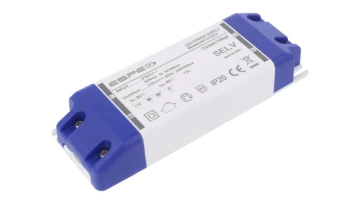 Zasilacz impulsowy LED 20W 12VDC 1,66A 220÷240VAC -10÷40C LNC2012CV