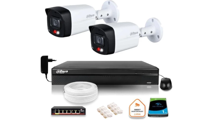 Zestaw monitoringu IP Dahua 8mpx 4K 2 kamery IPC-HFW2849S-S-IL z dyskiem 1TB