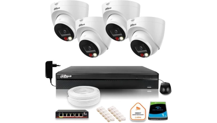 Zestaw monitoringu IP Dahua 8 kamer obrotowych 2MP+2MP z dyskiem 1TB