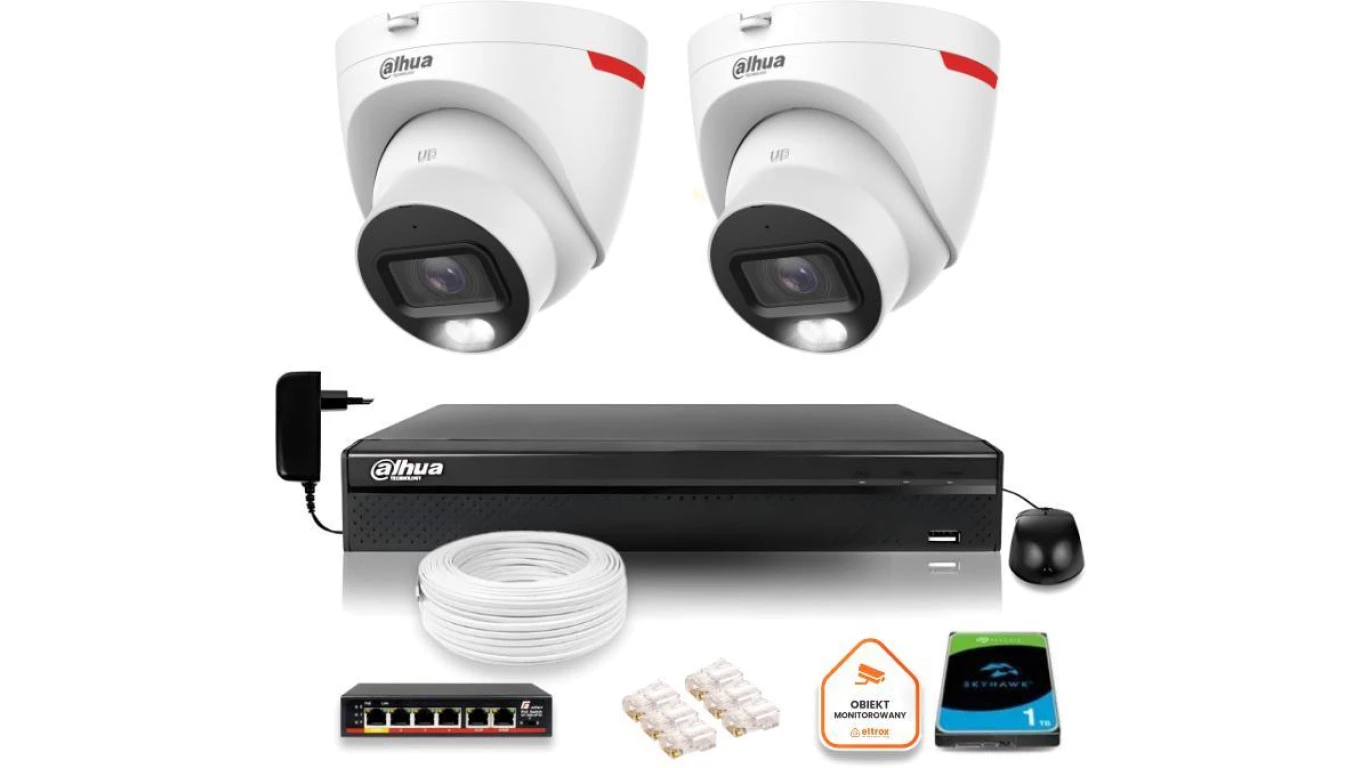 Zestaw monitoringu IP DAHUA 2 kamery zewnętrzne WizColor 2K 30m