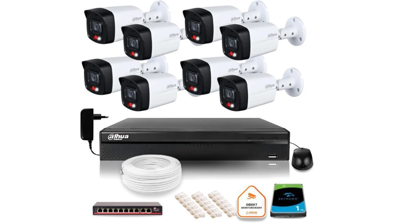 Zestaw monitoringu IP Dahua 2MPx 8 Kamer zewnętrznych Smart Dual Light IR LED 30m