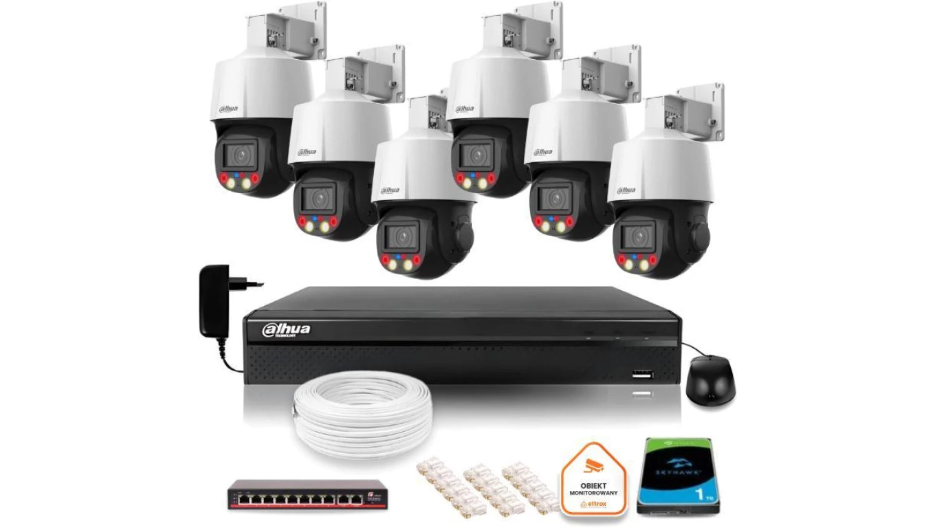 Zestaw monitoringu IP Dahua 6 kamer obrotowych 4MPx dysk 1TB