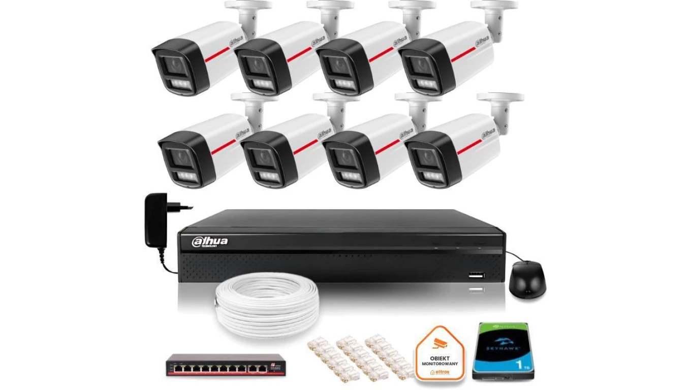 Zestaw monitoringu IP DAHUA 8 kamer zewnętrznych WizColor 2K 30m