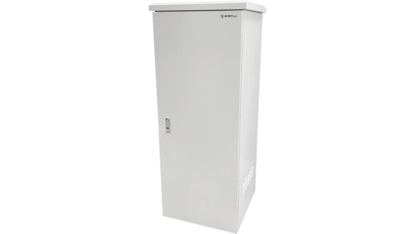 Zewnętrzna szafka rack IP55, stojąca 19 32U 600x600, 4 belki nośne, 4 przepusty kablowe, kolor szary