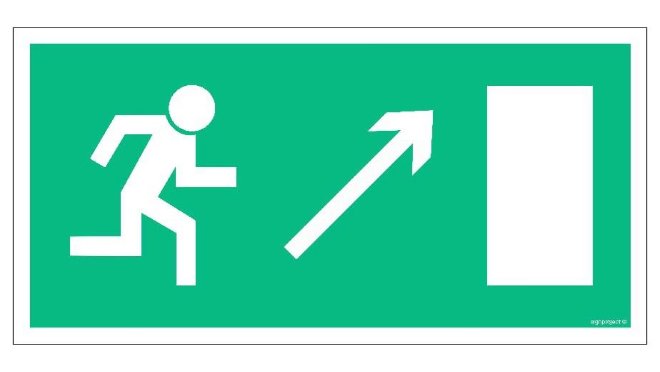 ZNAK - AC015 Wyjście ewakuacyjne w prawo w górę 80 x 40 cm PS - Płyta 1mm foto.