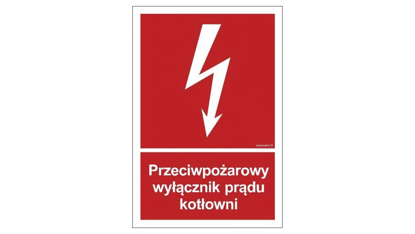 ZNAK - BB024 Przeciwpożarowy wyłącznik prądu kotłowni 20 x 29,6 cm PS - Płyta 1mm foto.