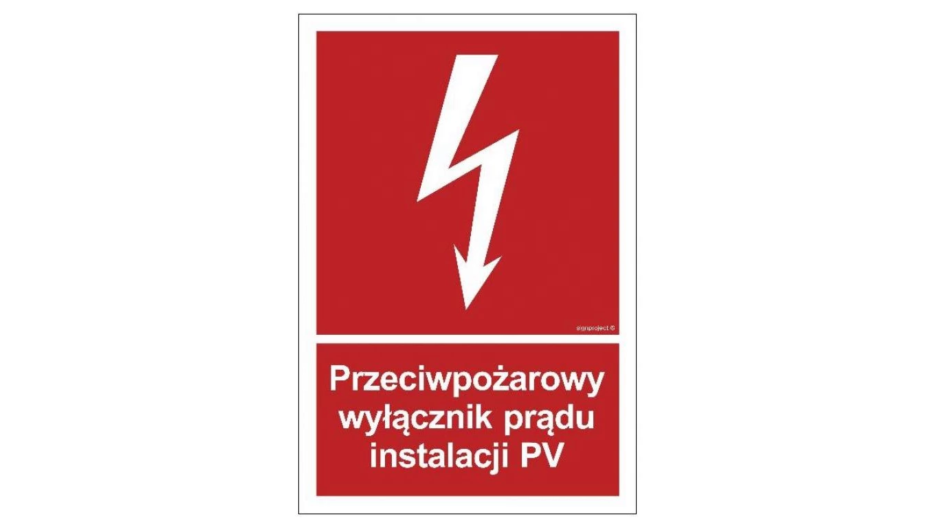 ZNAK - BC145 Przeciwpożarowy wyłącznik prądu instalacji PV 50 x 74 cm TS - Płyta TD foto.