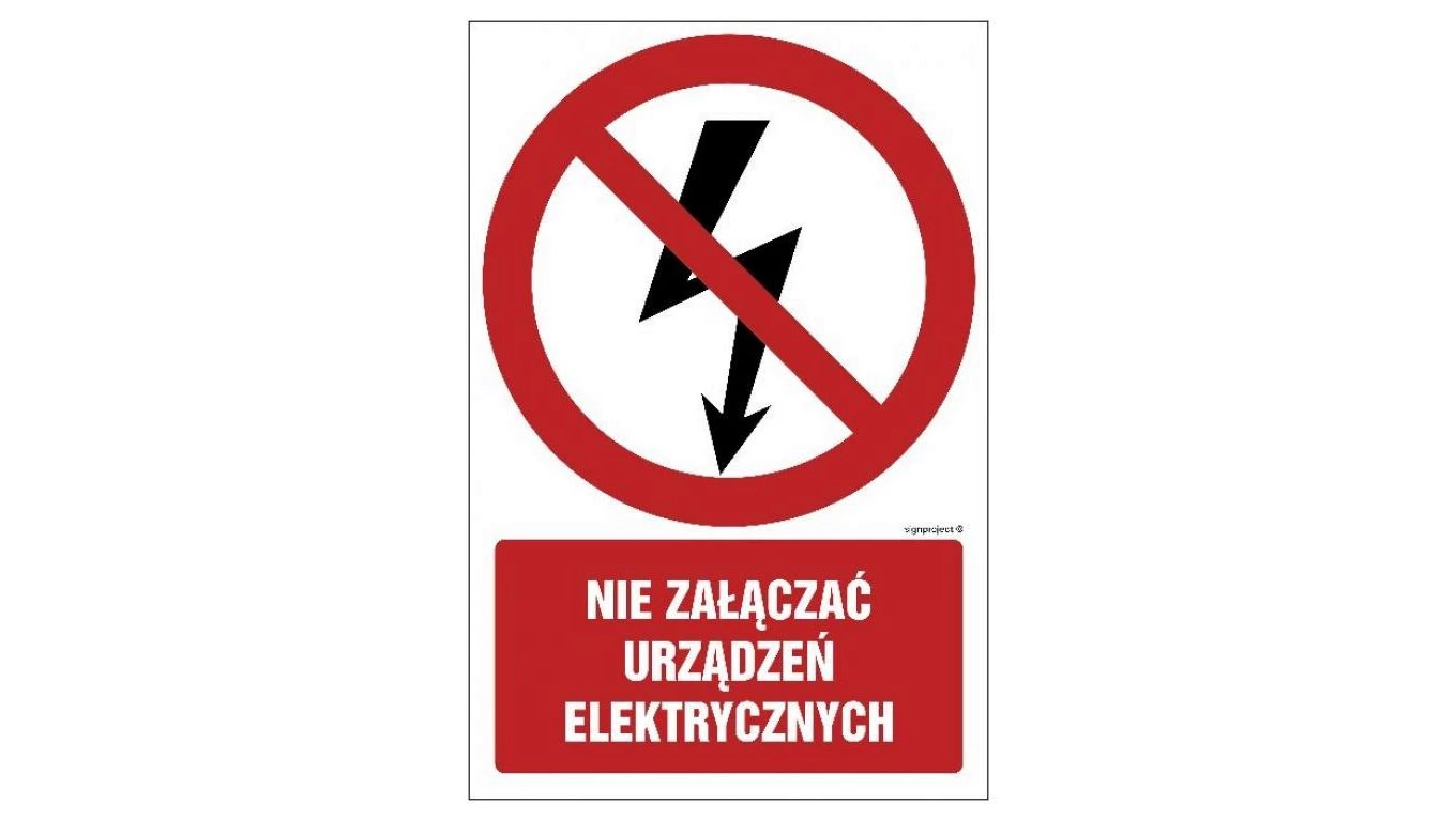 ZNAK - GC019 Nie załączać urządzeń elektrycznych 30 x 45 cm FN - Folia samoprzylepna