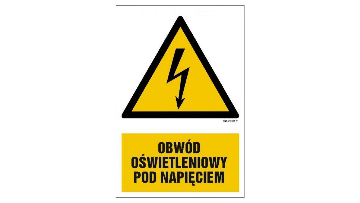 ZNAK - HA009 Obwód oświetleniowy pod napięciem - opakowanie 10 sztuk 5 x 7,5 cm PN - Płyta 1mm