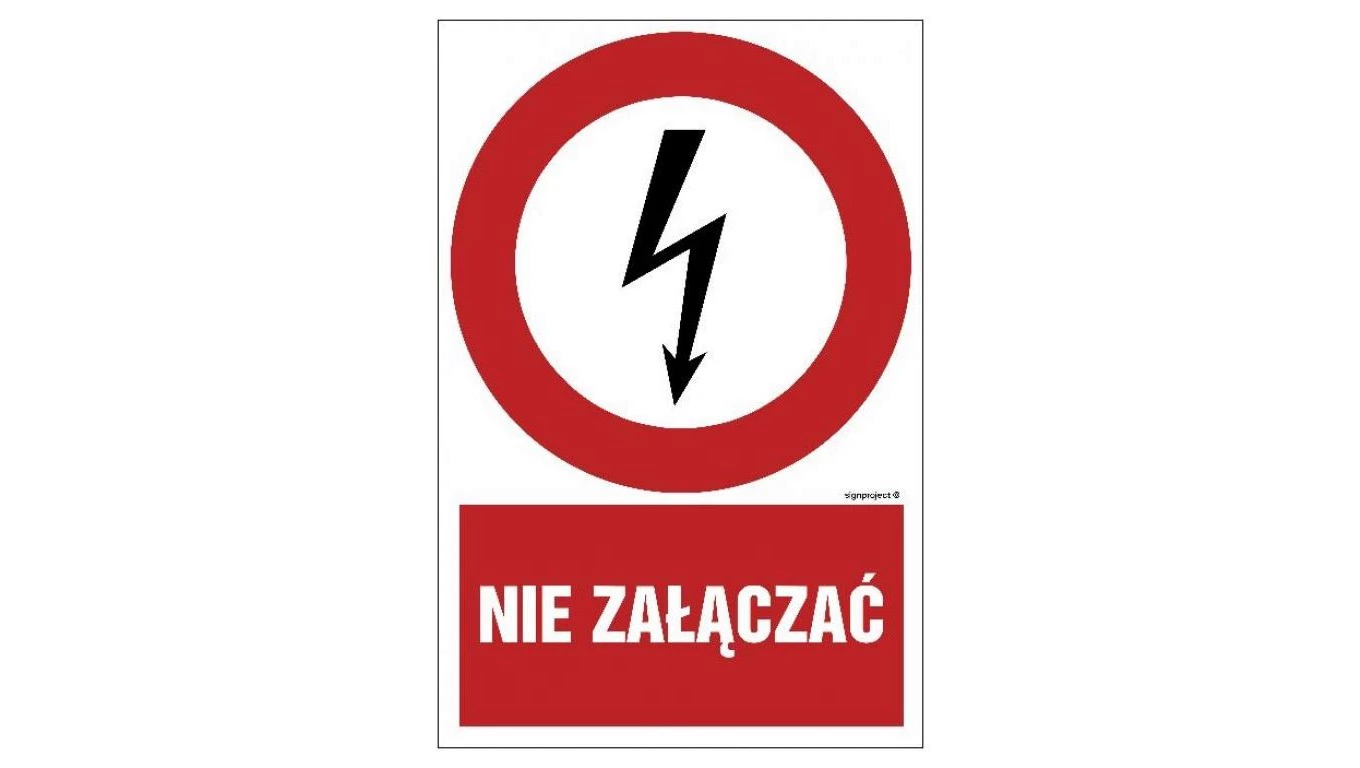 ZNAK - GC019 Nie załączać urządzeń elektrycznych 30 x 45 cm FN - Folia samoprzylepna