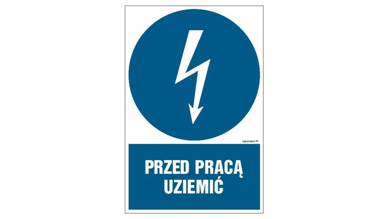 ZNAK - HE005 Przed pracą uziemić 20 x 30 cm FN - Folia samoprzylepna