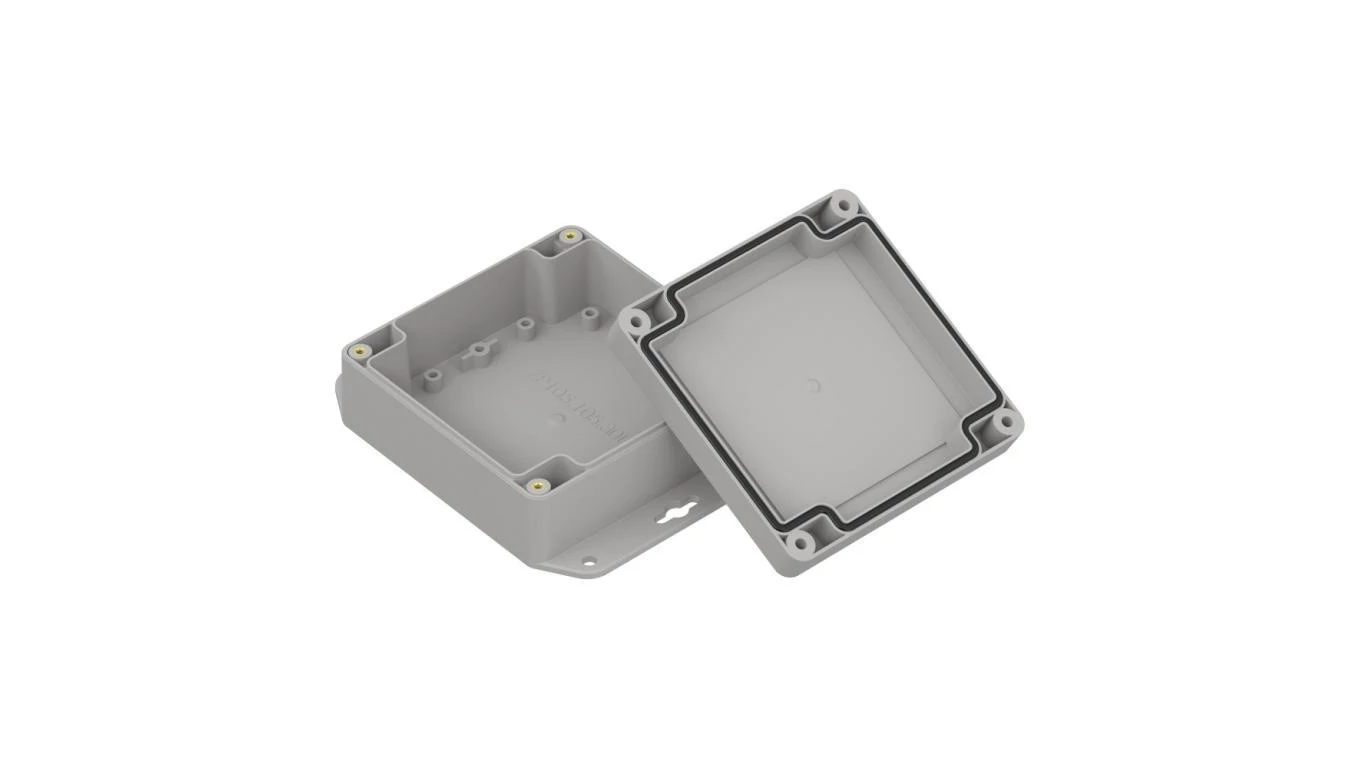 ZP105.105.60SUJp-IP67 TM PC - Obudowa hermetyczna ZP105.105.60 jasny dół z uszami - bezbarwna góra z uszczelką zalewaną i tulejk