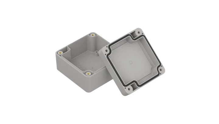 ZP90.90.45SUJ-IP67 TM PC - Obudowa hermetyczna ZP90.90.45s jasna z uszami z uszczelką zalewaną i tulejkami mosiężnymi PC